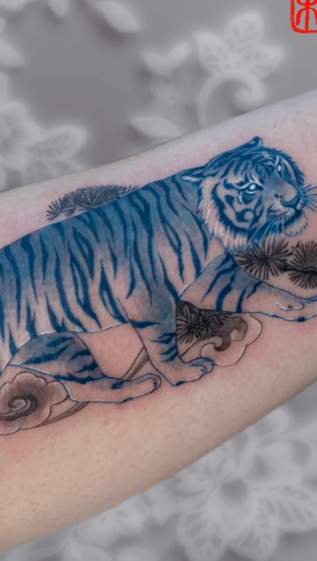 We do like Gloria Zhang tattoos because she can perform perfectly in more illustration style, but in realism or Japanese too, everything with some Chinese painting touches, and we think this is just beautiful.